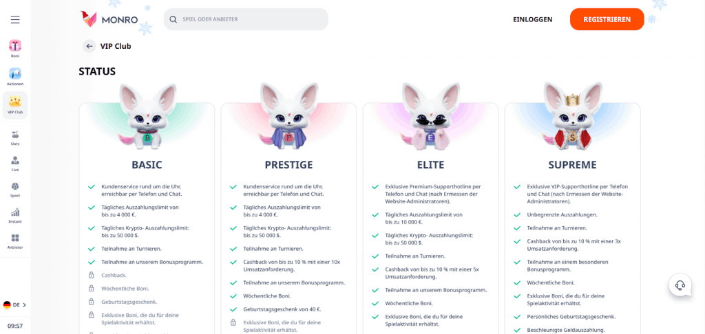 | VIP-Programm | 4 Stufen (Basic, Prestige, Elite, Supreme) |