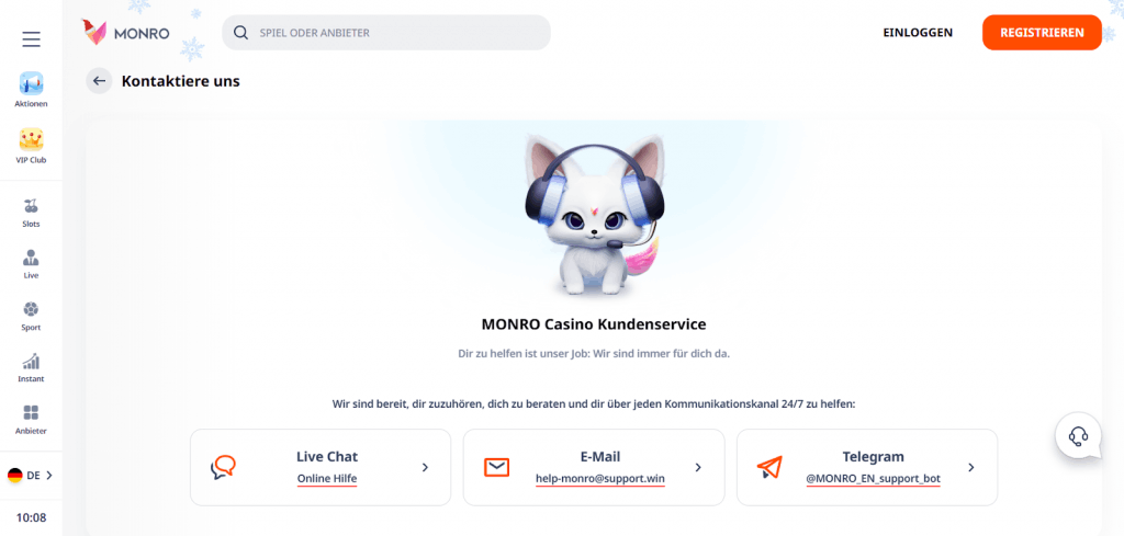 Der Kundensupport ist ein entscheidender Faktor für jedes Online-Casino. Bei meinem Monro Casino Test habe ich den Support mehrfach kontaktiert, um Antwortzeiten und Qualität zu prüfen.